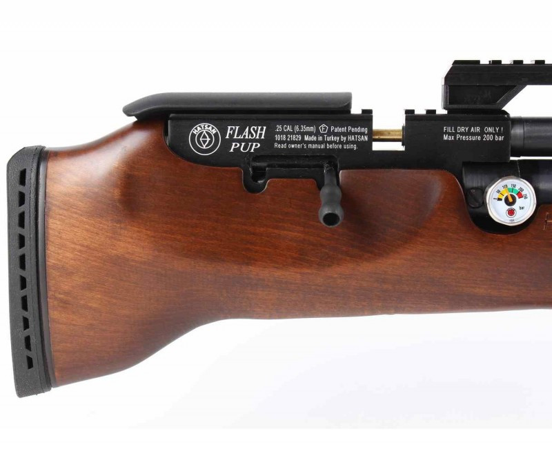 Пневматическая винтовка Hatsan Flashpup QE (дерево, PCP) 6,35 мм - это мощная разработка РСР-типа от популярного бренда пневматики Хатсан, отличающаяся самой высокой мощностью в линейке Flash. Винтовка разработана под калибр 6,35 мм, и подходит для охоты. На отечественный рынок винтовка поставляется в ослабленном варианте, чтобы каждый совершеннолетний мог купить ее свободно.