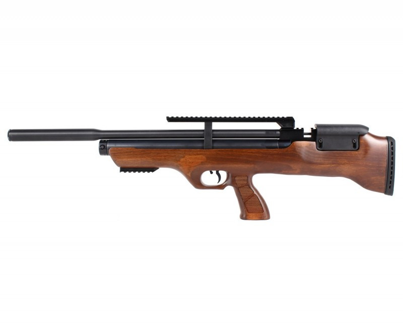 Винтовка выполнена из высококачественных материалов, и выделяется эффектным внешним видом. Приклад булл-пап выполнен из натуральной древесины - турецкого ореха, и дополнен подщечником для комфорта прицеливания. Нарезной ствол, как и ответственные элементы, выполнен из металлического сплава. Благодаря интегрированному модератору винтовка отличается малой шумностью.