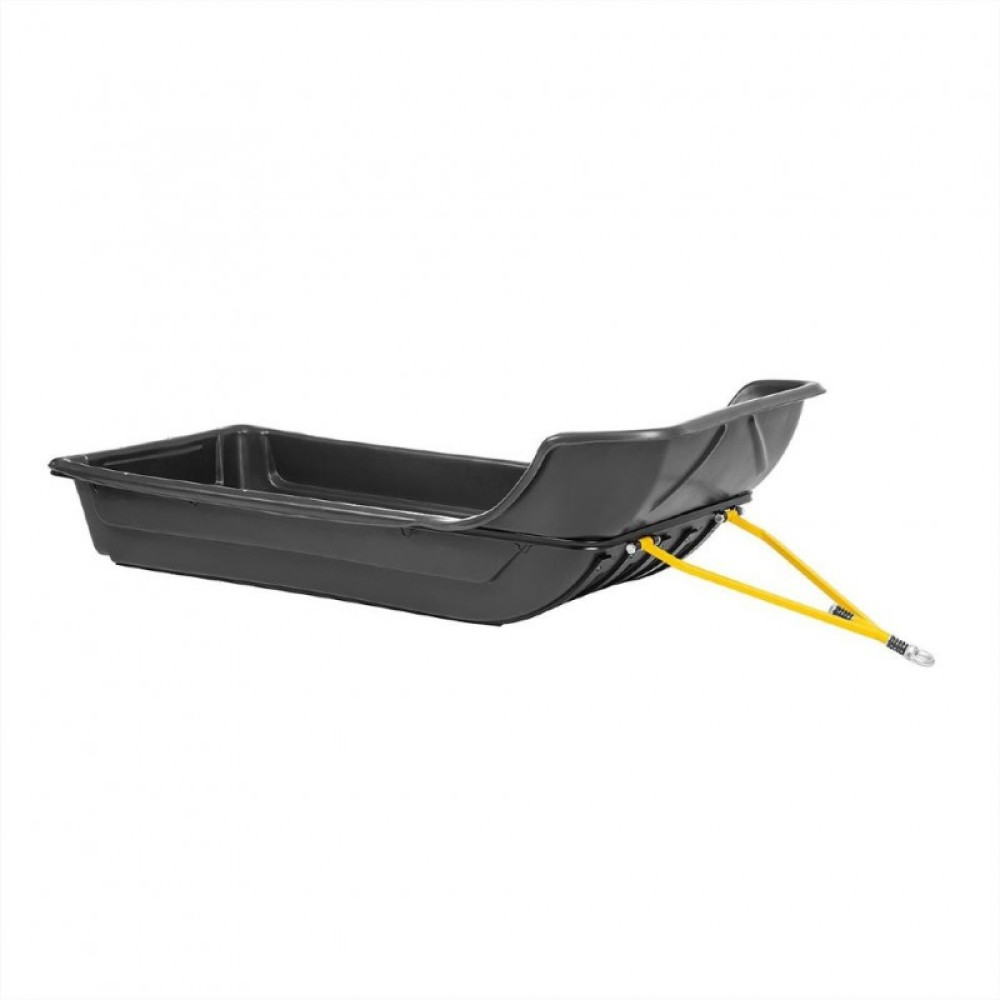 - Высокопрочный морозо- и ударостойкий полиэтилен, из которого выполнены сани, позволит использовать их даже в суровые морозы.