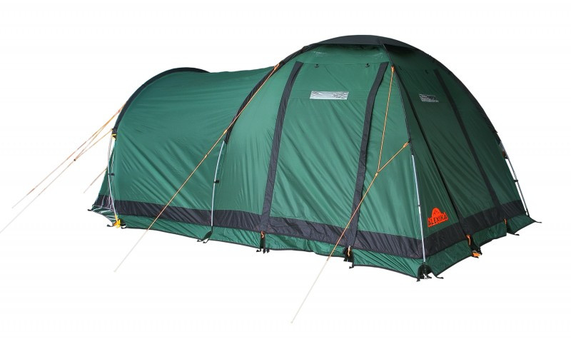 Кофортабельная четырехместная палатка из серии компакт-кемпинг. Отличается от других моделей большим высоким тамбуром купольной конструкции. Внутренняя палатка-спальня подвешивается изнутри. Это позволяет легко установить палатку даже в сильный дождь. В комплекте идет съемный пол для тамбурного отсека. Тамбур палатки можно использовать для отдыха, поставив в нем складные стульчики и небольшой столик или под склад для вещей. Дно палатки, выполненное из плотного и крепкого материала Polyester, предотвратит намокание спальных мешков даже во время проливного дождя.