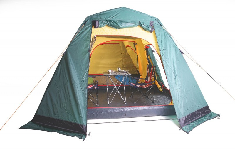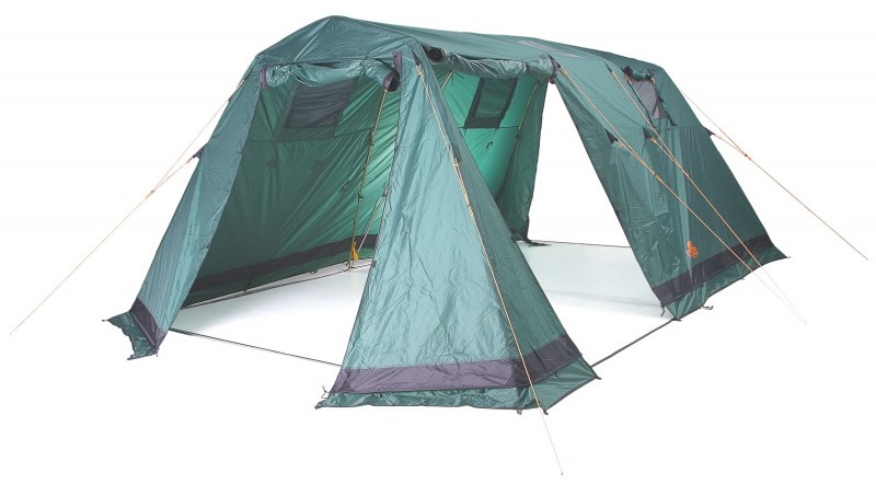 Две просторные спальни, каждая на пять человек общей площадью почти 18 квадратных метров. Можно использовать эту палатку и семьей в 3-4 человека. Тогда у вас будет большая столовая и отдельная спальня. Внутренняя палатка надежно защитит вас от мошкары и змей. Главное держать входы во внутреннюю палатку постоянно закрытыми. Если вы захотите сделать просторную столовую для друзей, просто снимите внутреннюю палатку и под тентом легко разместится большая веселая компания. При достаточно больших размерах палатку может установить даже один человек, но намного удобней будет устанавливать палатку вдвоем или втроем. Время установки занимает не более 10-15 минут. Все элементы, которые должны соединяться при сборке палатки, имеют сходную цветовую маркировку. Для своего размера палатка очень устойчива даже на сильном ветру, но очень важно в момент установки натянуть все растяжки и закрепить палатку по периметру колышками. У палатки три широких входа, это позволит проветривать палатку в жаркую погоду, а в дождливую погоду выбрать тот вход, в сторону которого не направлен поток дождя. На входах в тамбур есть полог из москитной сетки, это защитит вас от комаров и мошки.