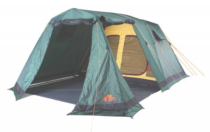 Victoria 5 Luxe - это настоящий загородный дом для отдыха на природе. Общая площадь палатки составляет почти 18 квадратных метров, высота потолка до двух метров под коньком. Во вместительной спальне комфортно разместятся пять человек, при необходимости спальню можно разделить шторой на два отделения. Огромный тамбур в девять квадратных метров позволит сделать столовую и багаж. В комплекте есть съемный пол, который закрывает всю площадь тамбура, защищая вас от сырой земли и травы. Если вы захотите сделать просторную столовую для всех ваших друзей, просто снимите спальное отделение и в палатке легко разместится большая веселая компания. При достаточно больших размерах палатку может установить даже один человек, но намного удобней будет устанавливать палатку вдвоем или втроем. Время установки занимает не более 10-15 минут. Все элементы, которые должны соединяться при сборке палатки, имеют сходную цветовую маркирову. Для своего размера палатка очень устойчива даже на сильном ветру, но очень важно в момент установки натянуть все растяжки и закрепить палатку по периметру колышками. У палатки три широких входа, которые позволяют продувать палатку в жаркую погоду, а в дождливую погоду выбрать тот вход, в сторону которого не направлен поток дождя. На входах в тамбур есть полог из москитной сетки, который защитит вас от комаров и мошки.Комфорт сна обеспечивается двухслойной конструкцией палатки: поток воздуха циркулирует в пространстве между внешним тентом и внутренней палаткой, испаряет конденсат, забирает продукты дыхания и выводит их через вентиляционную систему. Для эффективной вентиляции обязательно откройте и натяните защитные короба над вентиляционными окнами. Если ожидается очень сильный дождь, то следует закрыть вентиляцию полностью. В жаркую погоду козырьки можно отстегнуть по сторонам, свернуть и закрепить над окном. Тент палатки выполнен из прочной, устойчивой к истиранию и разрушению ультрафиолетом полиэстеровой ткани (Polyester 190 T PU) с многослойным полиуретановым покрытием c внутренней стороны. Данное покрытие гарантирует водонепроницаемость более 10 000 мм водяного столба (давление воды при обычном дожде не превышает 1500-2000 мм) для новой палатки и не менее 4 000 мм для палатки, используемой в течение нескольких лет. Для увеличения водоотталкивающих свойств внешняя сторона тента обработана специальной пропиткой Water Repellent (водоотталкивающая пропитка). Также ткань пропитана составом, задерживающим распространения огня (в месте падения искры ткань может оплавиться, но не произойдет общее возгорание палатки, что очень важно с точки зрения безопасности). Дно палатки выполнено из высокопрочной и устойчивой к истиранию ткани Оксфорд (Oxford Polyester 150D PU) с многослойным покрытием полиуретаном. Максимальная водонепроницаемость составляет более 11 000 мм водяного столба, минимальная - 6 000 мм водяного столба. Дно палатки сшито в виде короба, что спасет вас от затопления даже в очень сильный дождь.Дополнительный съемный пол в тамбур выполнен из прочного армированного полиэтилена. Водонепроницаемость пола составляет более 5 000 мм водяного столба. Тент внутренней палатки произведен из полиэстеровой ткани с усилением (Polyester RipStop Light). Для усиления ткани без большого увеличения веса вплетена более толстая и прочная нить с равномерным шагом по ве