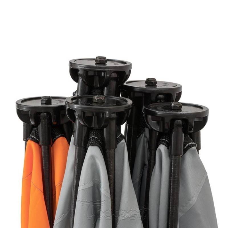 - На концах дуг закреплены защитные пластиковые колпачки, которые предотвратят порыв ткани в зоне стыка крыши и стен палатки.