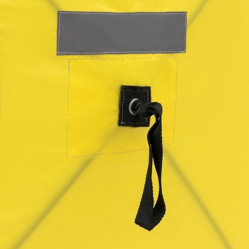 Широкая снегозащитная юбка предотвращает попадание холодного воздуха внутрь палатки. Надежные люверсы большого диаметра на юбке помогают фиксировать палатку на льду бурами-ввертышами No1 и No2. Два вентиляционных окна оснащены сеткой и съемными ветровыми клапанами обеспечивают в палатке комфортное прибывание. Так же есть два открывающихся окна с прозрачными убирающимися шторками. На стенке палатки карман для рыболовных мелочей.