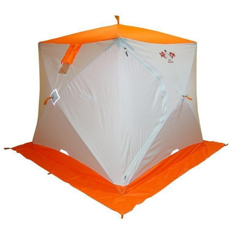 Палатка имеет 2 форточки выполненных с применением прозрачной морозостойкой пленки. Основной цвет белый с цветной крышей и порогами, на наружном тенте имеются светоотражающие элементы что немаловажно для безопасности на льду в темное время суток.