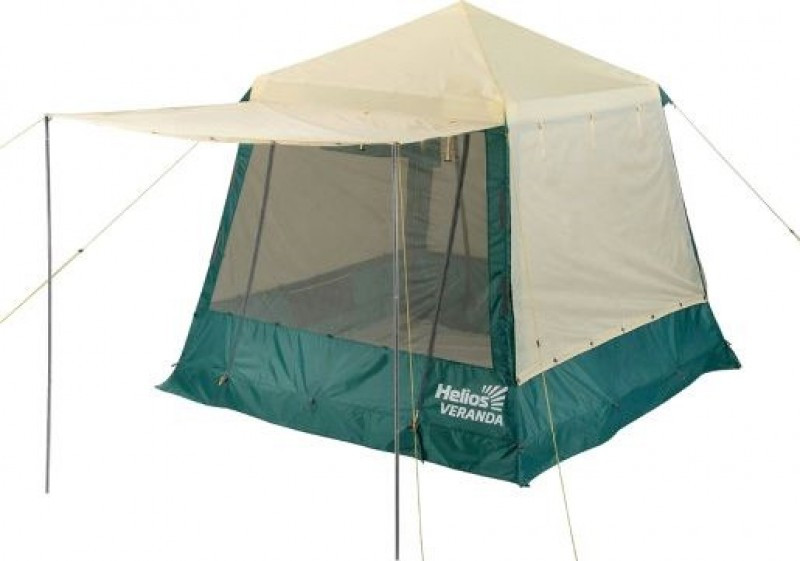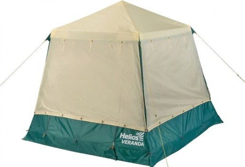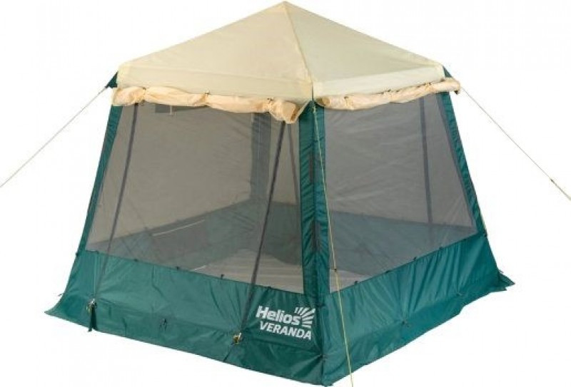Купол выполнен из светлой ткани, которая пропускает свет и не нагревается даже в самый солнечный день. В сложенном виде шатер занимает мало места и спокойно размещается в багажнике.