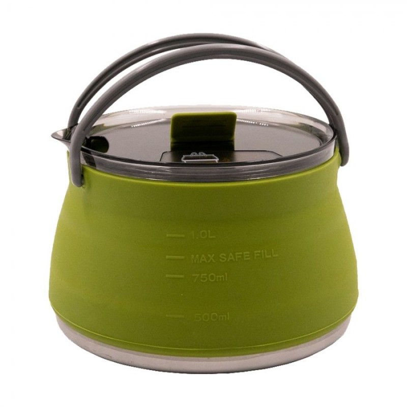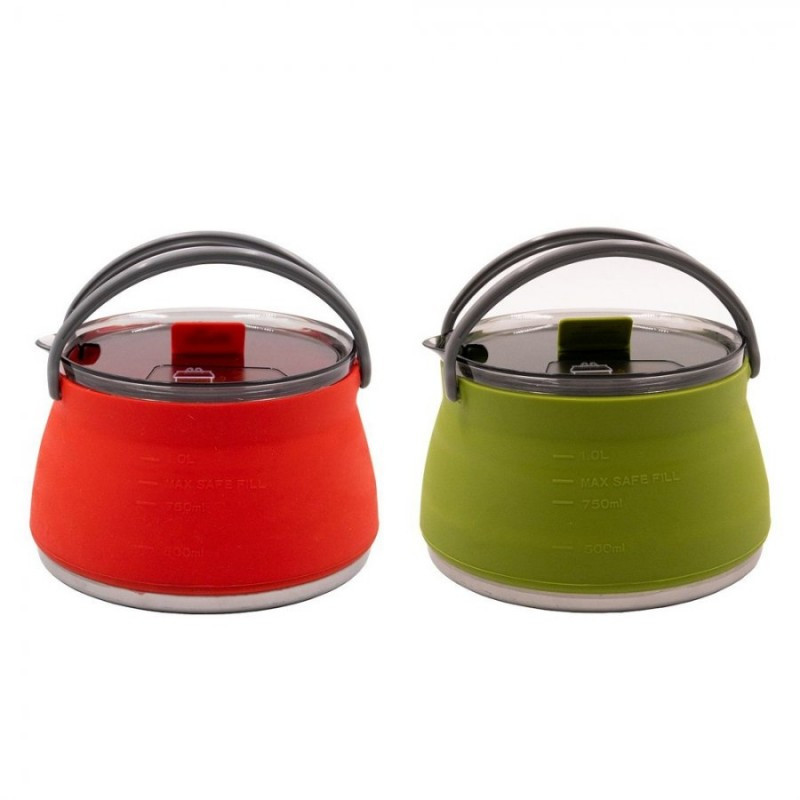 Лёгкий компактный туристический чайник со стенками из термостойкого пищевого силикона и дном из нержавеющей стали.