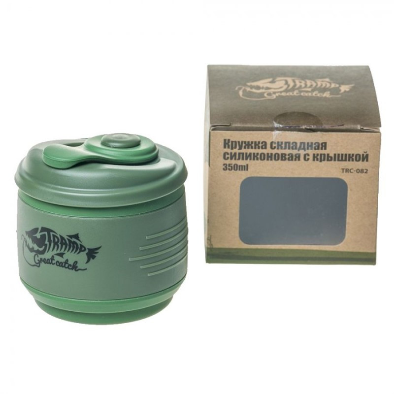 Tramp кружка силиконовая складная с крышкой (оливковый/зеленый, 350 мл)
