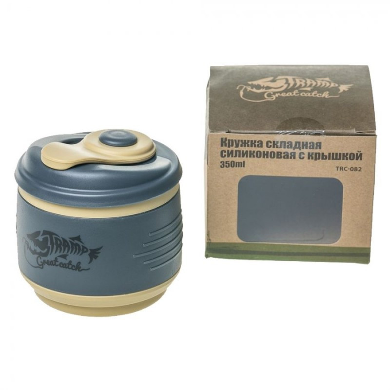 Tramp кружка силиконовая складная с крышкой (песочный/черный, 350 мл)