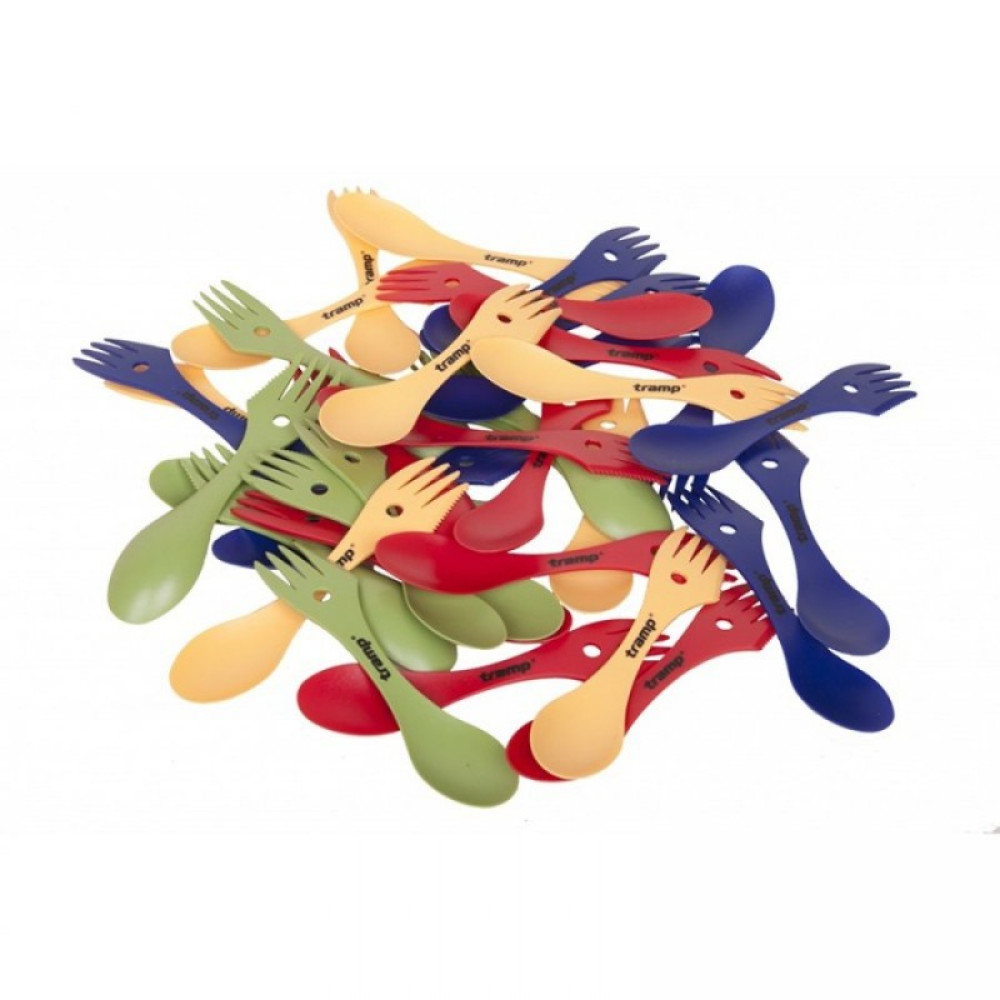 Комбинированная ложка-вилка-нож. Легко моется, занимает минимум места в рюкзаке.