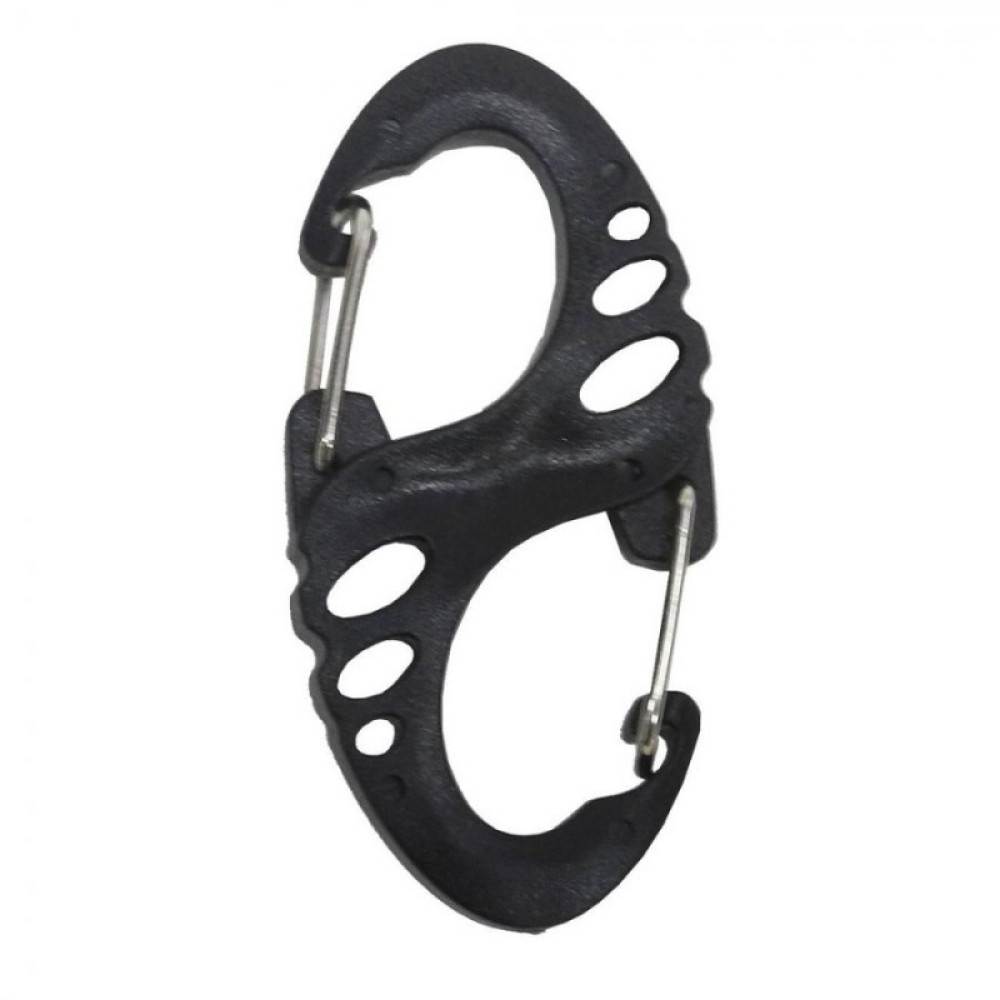 Маленький двусторонний вспомагательный S-type карабин - компактный и легкий, предназначен для крепления ключей, фонарей, легкого снаряжения. Небольшой размер (5 см) и вес (3гр) позволит взять с собой несколько карабинов.